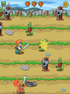 Defeat foul foes in this side-scrolling arcade action game! Fend off goblins, skeletons, ghosts and more! Eat meat to survive longer and beat up the high score!