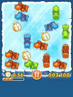 Cute rhino puzzle board game for your mobile! Hit rhinos with the same color and perform chain reactions to get cool boosters like extra time or the bomb!