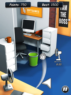 You are stuck in the office again and you need to kill some time? As doing your daily work is not an option, it is time to get ready to play office games! Put your feet up, virtually crumple up a piece of paper in this fun online game and see if can throw it into the small trash can in your room! Easy enough you think? Well, think again! The electric fans blowing fresh air through your office will make your task harder and harder as they power up over time. Don't give up and try to make the shot anyway!