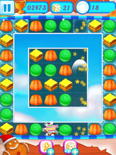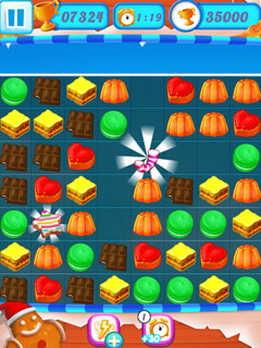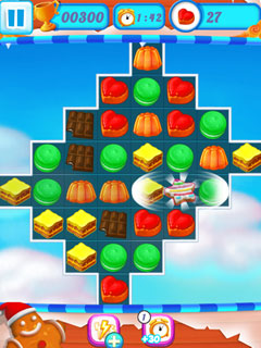 Winter time is the best time to enjoy sweets and candies, isn't it? While it's freezing cold outside we relish sweets and chocolates and share them with those dearest to us. Now here is Winter Dream 2, that is all sweets but no calories - exactly the fun game to play in snug lodgings when the bitter cold prevents you from going out! In this beautiful and challenging match-three video game it is your task to combine at least three of the delicious sweets to make them disappear. If you play smart and manage to make more candy vanish with one move or even trigger combos that make different sorts of candy vanish, you can get tons of extra points and useful boosters, that make it much easier to achieve the levels goals. Always have an eye on the scores though, as you only have a limited amount of moves to reach win the level.